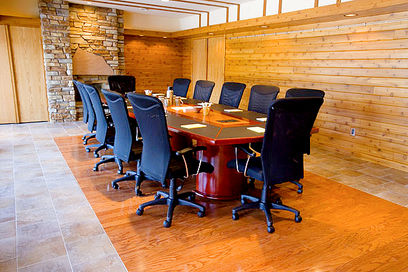 Lookout—our meeting room—has natural light, a beautiful lake view, and a private patio